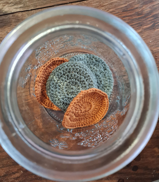 Ces lingettes visage lavables sont crochetées à la main dans mon atelier, à partir de fibres naturelles et végétales, pour remplacer les cotons jetables au quotidien.